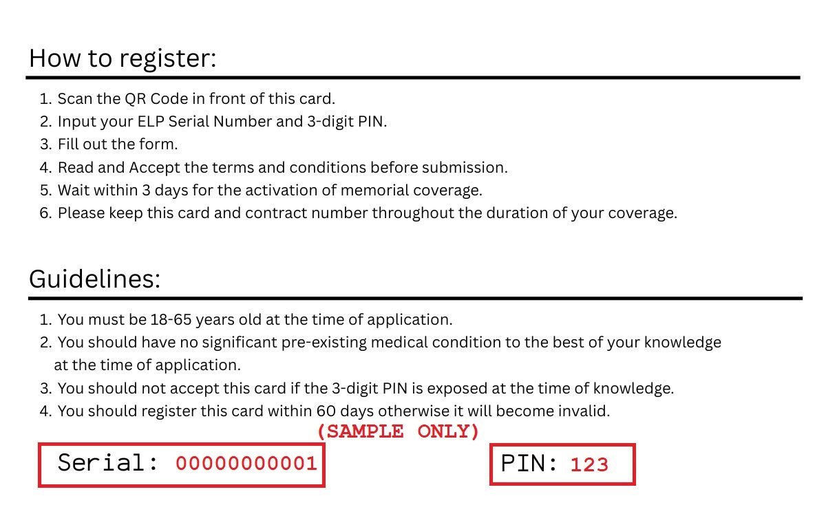 Your peace of mind starts here. Please register your ELP Card below.below